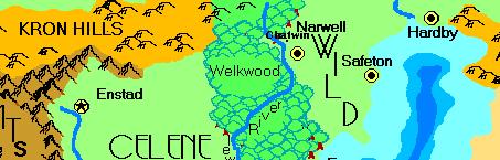 Fitzwilly Green , (CG me F4/W4); hp 25; AC 2; chain mail, shield; D 15, C 15, ML 11; Long sword Flame Tongue, short sword +2, Ring of Protection +1; . Spells: sleep; mirror image + ... . Fitzwilly was once recruited by a band of adventurers from his clan in the Welkwood Forest to help against a group of bandits. Other adventures in the cause of good have taken him as far west as Enstad in Celene. He knows of the resurgence of a bandit group in the Welkwood but can do nothing about it on his own. He also knows the exact location of the old prison and is a friend of Meriweather the Druid of Welkwood. With little explanation, Fitzwilly left Hadrian's employ in the spring of 584, and headed off into the Welkwood. He was not seen or heard from until Reaping, CY 585, when he returned to Chatwin in the company of Mallory Thorpe, (CG mh R10/?/?) hp 81; AC 2; Bracers AC4; Ring +1; long sword +5, defender. S 18, W 18, D 15, C 17; famed ranger of the Welkwood. The two were seen in the company of the Chatwin Seekers. After two days at the Inn of the Shadows they and the Seekers left the village heading west.